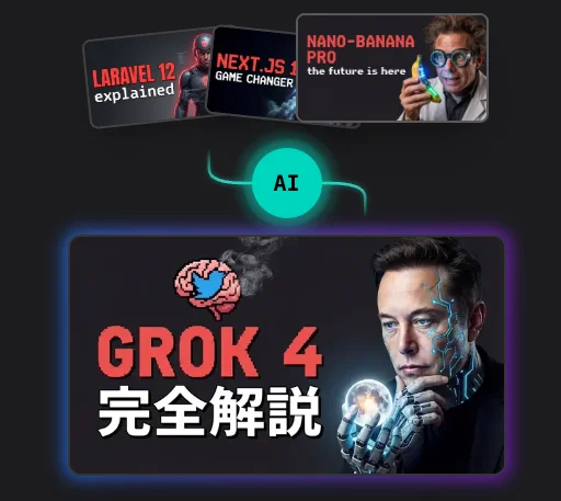 作りたいサムネイルのイメージをテキストで入力するだけで、AIが要素を配置し、魅力的な画像を生成します。